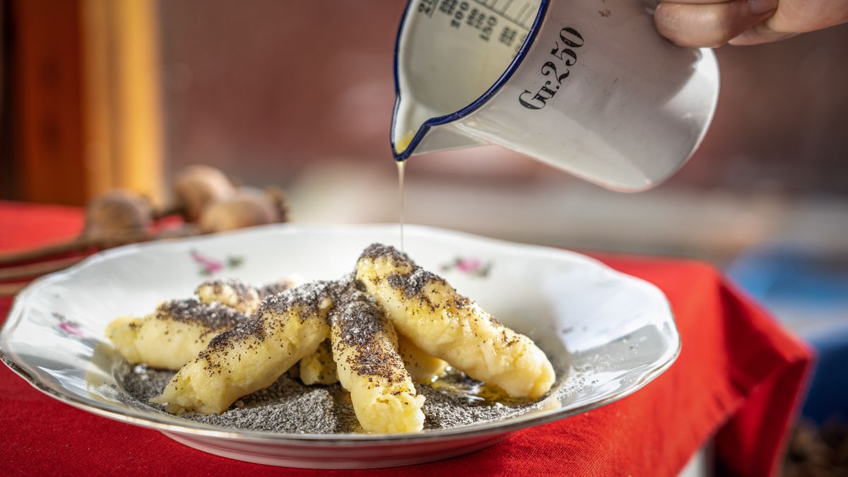 Jednotlivé porce posypeme mletým mákem, moučkovým cukrem a omastíme rozehřátým sádlem nebo máslem.