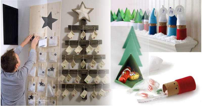Adventní kalendář nemusí mít formu krabiček na šňůrce. Zkuste je nalepit na kartonový stromeček, případně je nalepte na kartonové srdce nebo je schovejte různě po době (samozřejmě si vytvořte plánek). Pokud nechcete tvořit 24 "okének„ udělejte si jich jen pár a věště je na určité místo každý den. Každý typ může nabídnout jedinečný design a přizpůsobit se vkusu celé rodiny.