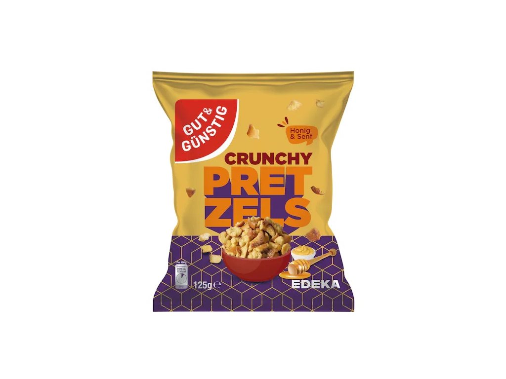 S GUT&GÜNSTIG Křupavé preclíčky s medem a hořčicí máte vždy po ruce lahodnou a křupavou svačinu, která zaujme svou pikantní medovou hořčičnou chutí. Ideální pro každého, kdo ocení sladkou a kořeněnou pochoutku.