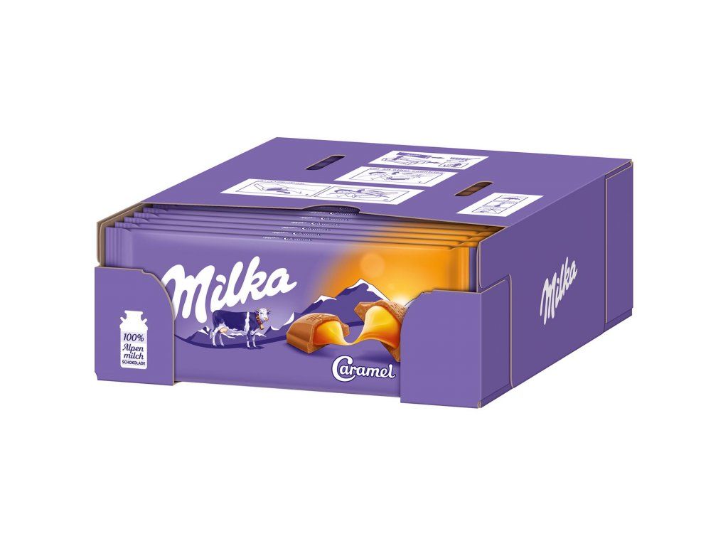 Milka Caramel je sladký a lahodný produkt, který spojuje jemnou mléčnou čokoládu značky Milka s bohatým a krémovým karamelovým jádrem. Tato čokoláda je ideální pro ty, kteří si přejí si dopřát kombinaci hladké čokolády a lahodného karamelu.