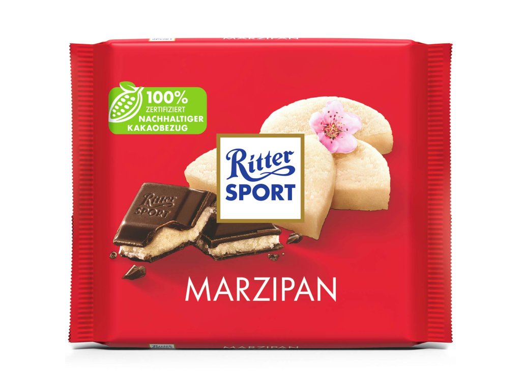 Patříte mezi milovníky marcipánu? Pak je pro vás Ritter Sport Marzipan čokoláda tou pravou volbou. Polobitá čokoláda s vysokým podílem kakaa obaluje jemnou marcipánovou náplň z vybraných mandlí, která dodává celé tabulce vytříbenou a nezaměnitelnou chuť. Lehce nahořklá čokoláda v kombinaci se sladkostí mandlí a jemným dotekem hořkých mandlí tvoří dokonale vyvážený celek. Tato klasika od značky Ritter Sport se právem řadí mezi nejoblíbenější příchutě v celé kolekci.