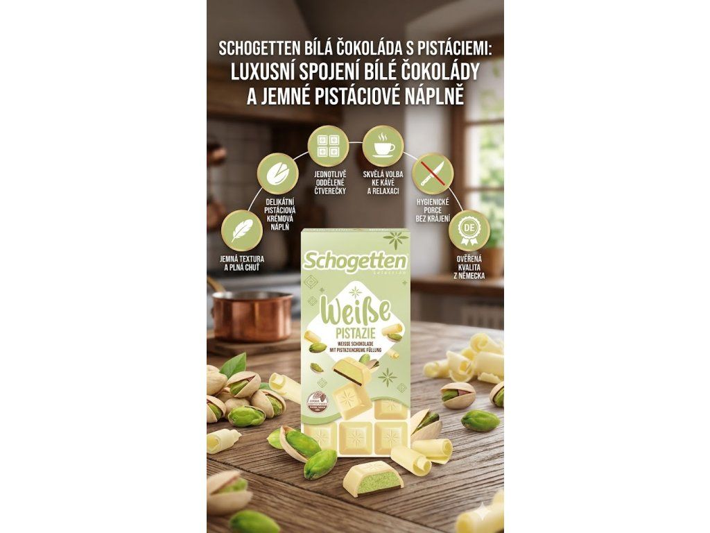 Proč si vybrat Schogetten Bílá čokoláda s pistáciemi 100 g: