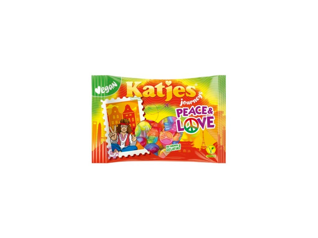 Katjes Peace & Love jsou 100% veganské ovocné bonbony bez živočišné želatiny. Jsou vyráběny pouze z rostlinných a ovocných koncentrátů, což zaručuje jejich krásně přirozené barvy a chuť. Díky své měkké textuře se doslova rozplývají na jazyku – a přitom neztrácí tu pravou ovocnou svěžest. A to vše v duchu „peace, love & happiness“!