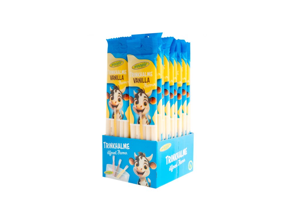 Woogie Trinkhalme s vanilkovou příchutí jsou jednoduchým způsobem, jak udělat z obyčejného pití malý aromatický zážitek. Dopřejte si sladkou vanilkovou radost kdykoliv během dne.