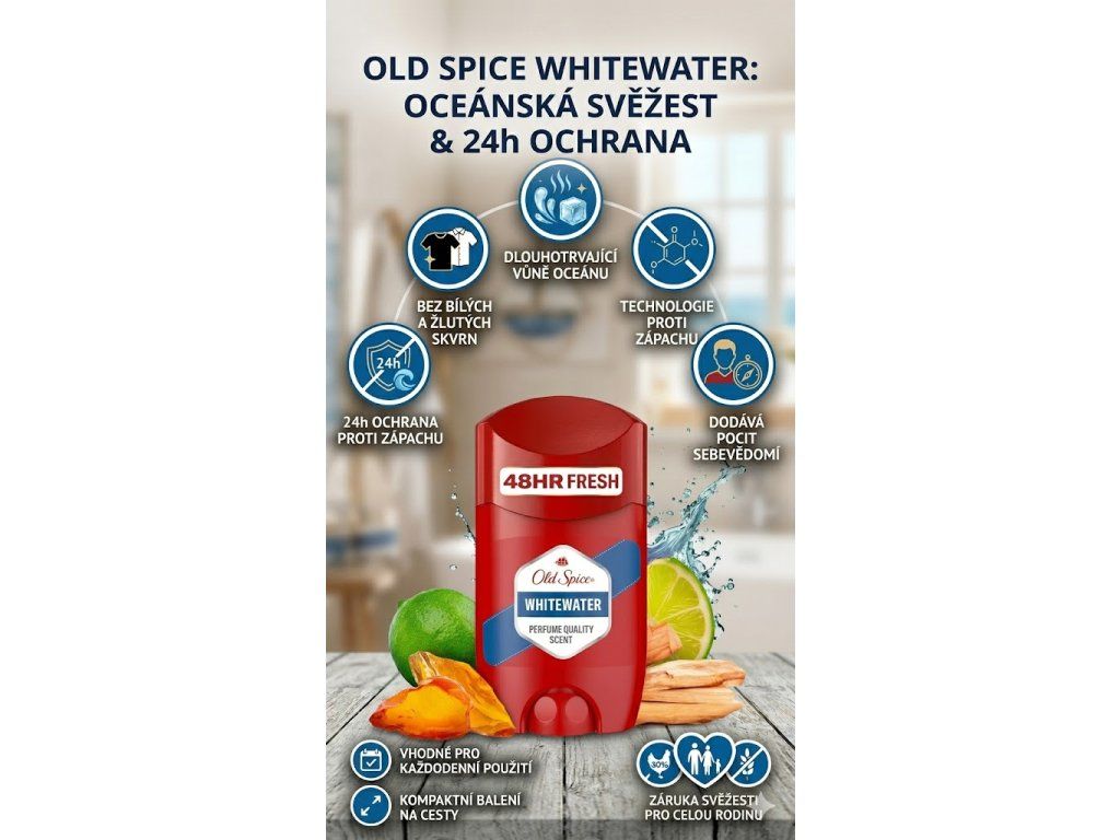 Vyberte si deodorant, který drží krok s vaším tempem. Old Spice Whitewater vám nabídne spolehlivou ochranu i příjemnou vůni, na kterou se můžete spolehnout.