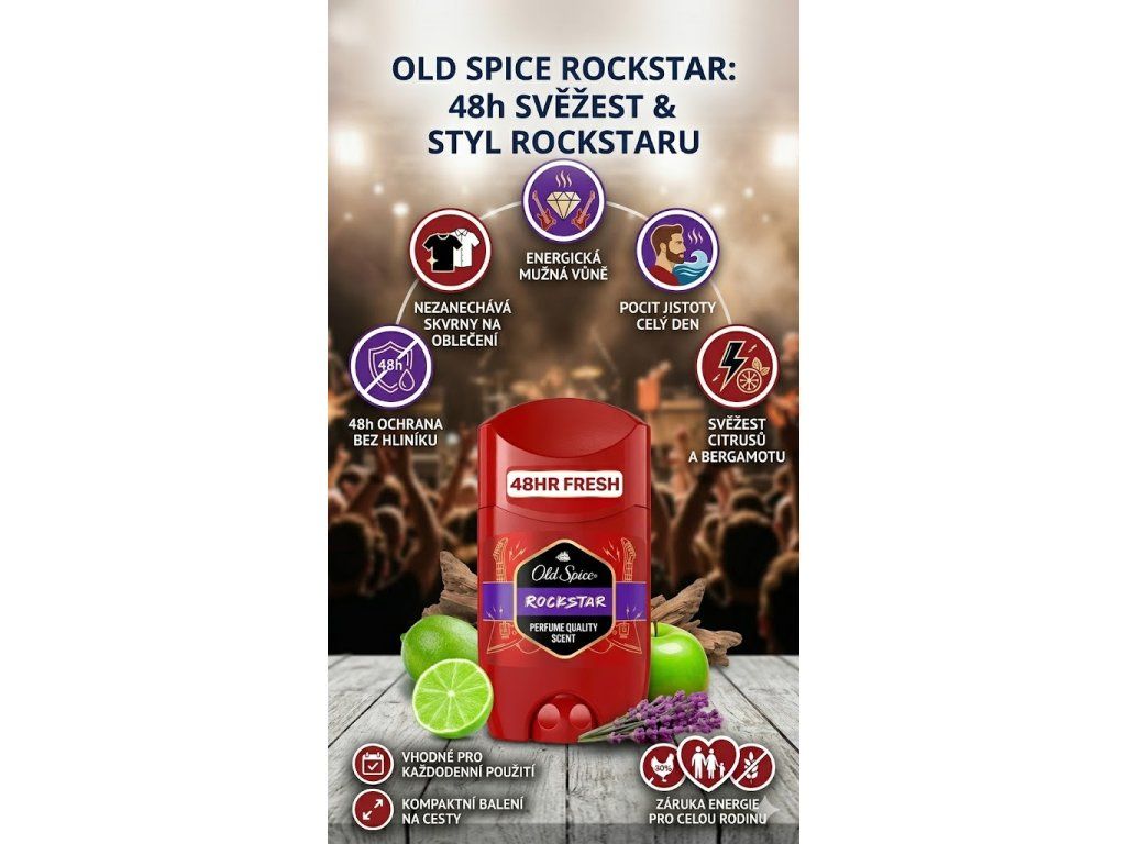 Dopřejte si deodorant, který drží krok s vaším životním stylem. Old Spice Rockstar vám nabídne výkon, vůni i komfort, na který se můžete spolehnout.