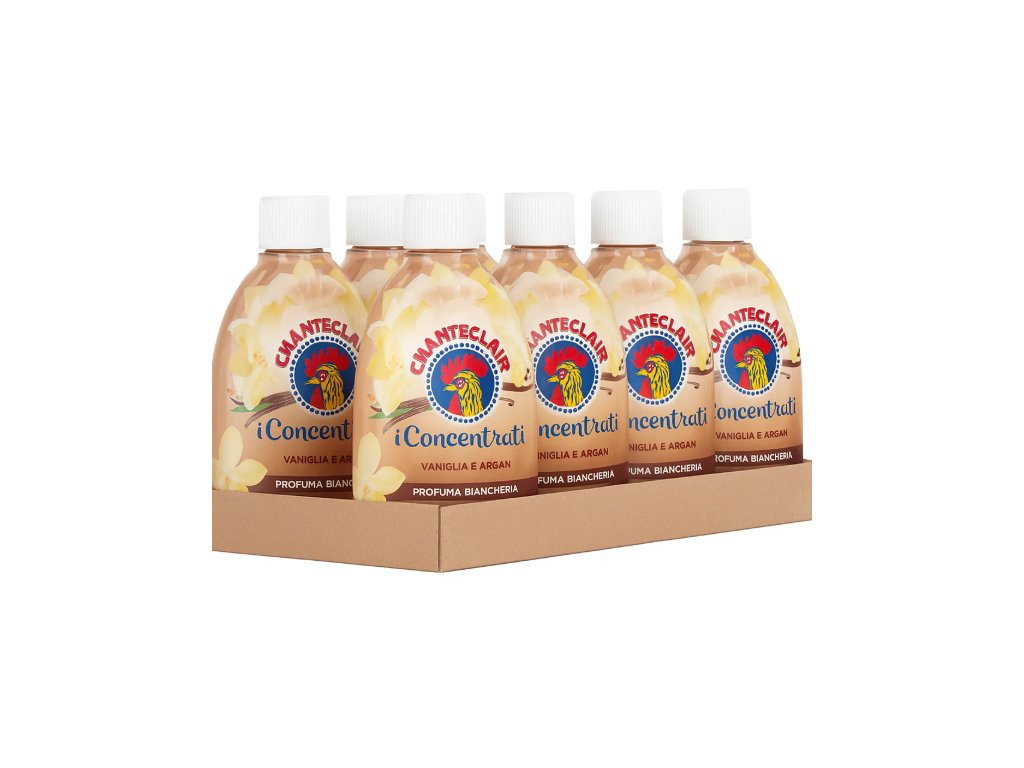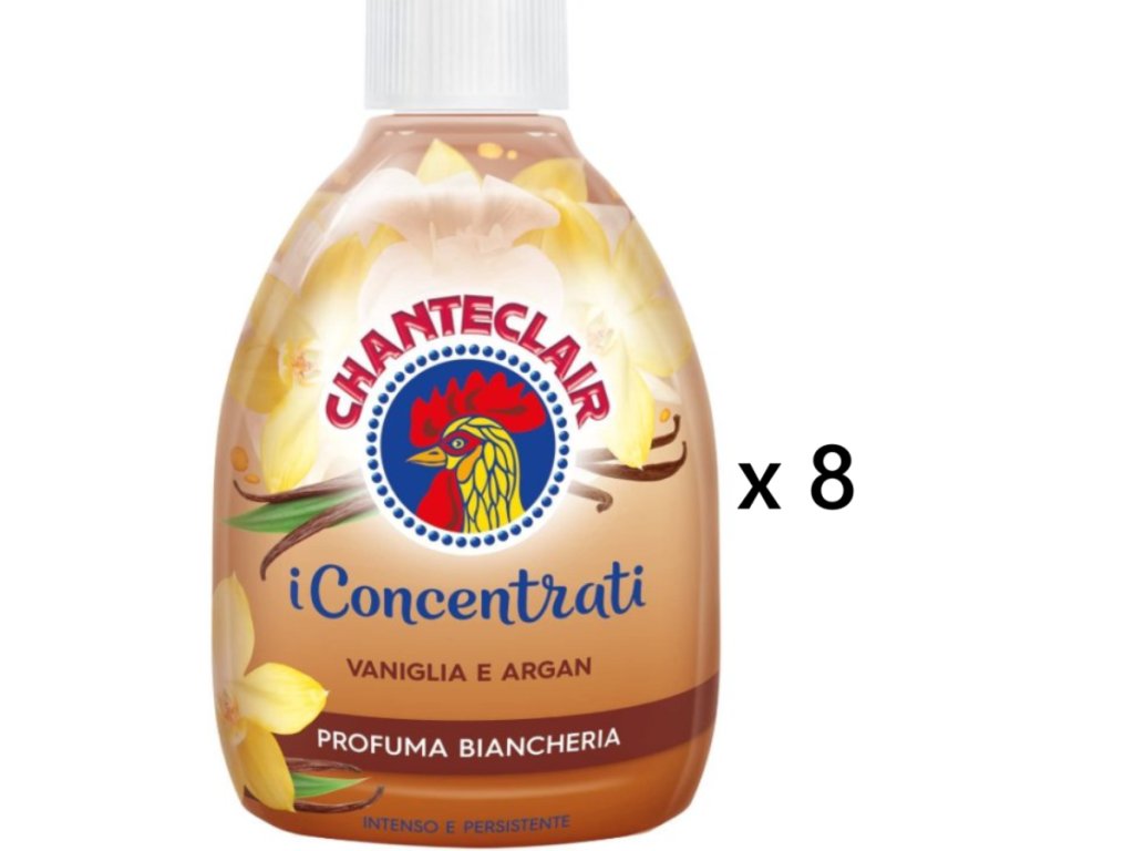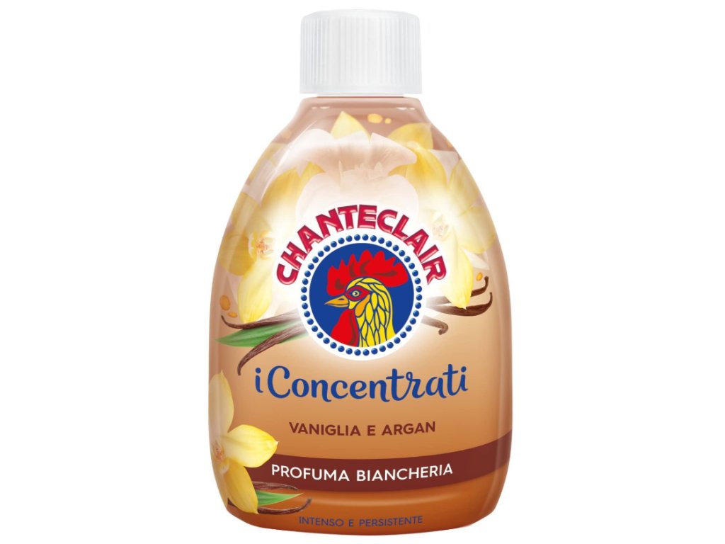 Chanteclair Profuma Biancheria I Concentrati Vaniglia e Argan je koncentrovaný parfém na prádlo s výraznou a smyslnou vůní vanilky a arganového oleje, která přináší zážitek orientální čistoty a elegance. Díky vysoké koncentraci parfému zanechává na prádle dlouhotrvající vůni až po dobu několika týdnů.
