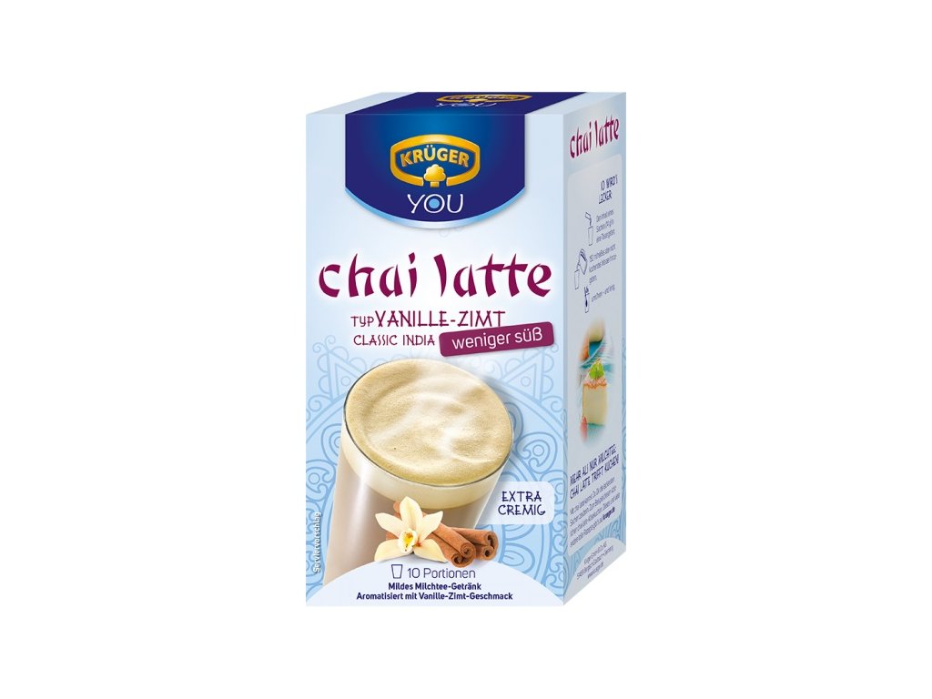 - KRÜGER YOU Chai Latte Vanilka Cinnamon, méně sladká, je ideální pro každého, kdo si chce vychutnat lahodnou chuť Chai Latte, aniž by se dotkl přílišné sladkosti. Užijte si tento jemný, ale aromatický nápoj kdykoli během dne jako relaxační přestávku od každodenního života.