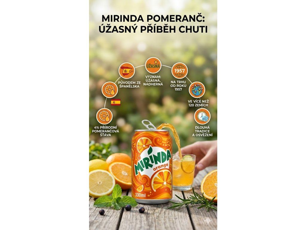 Mirinda pomeranč obsahuje 4% přírodní pomerančové štávy. Původně byla vyrobena ve Španělsku. Slovo Mirinda znamená "úžasná, nádherná". Na mezinárodní trh byla Mirinda uvedena v roce 1957 a v současné době se prodává ve více než 120 zemích celého světa.