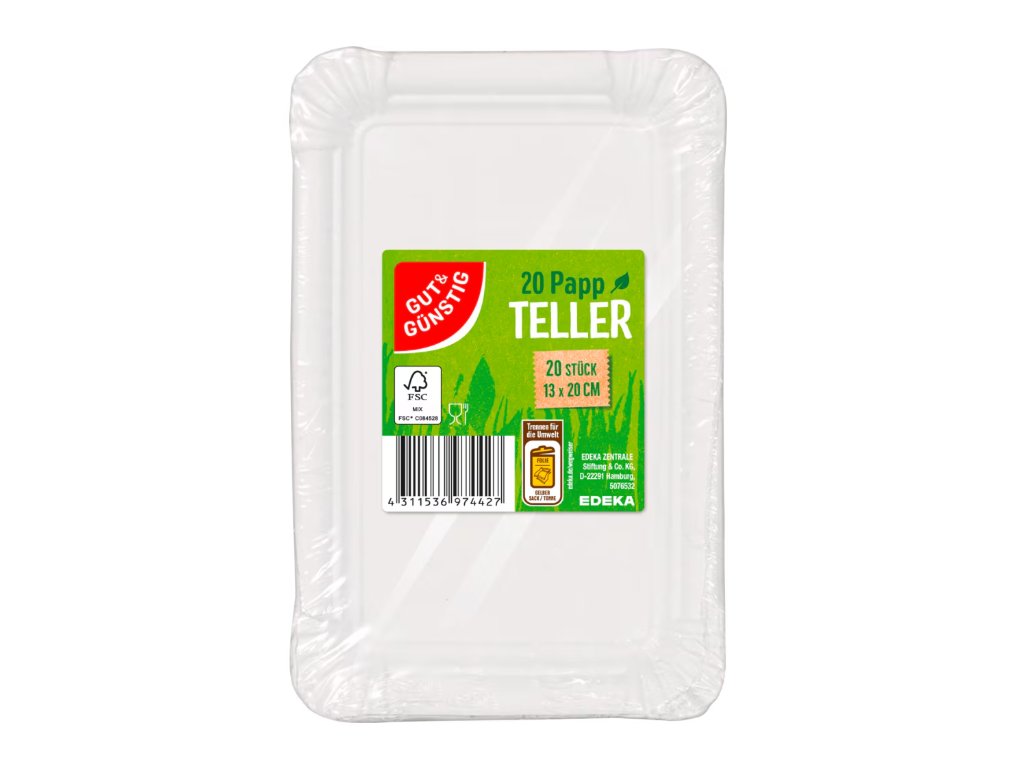 Pořádáte oslavu, grilování nebo piknik a nechcete se zdržovat mytím nádobí? Papírové talíře GUT&GÜNSTIG v praktickém obdélníkovém formátu 13 × 20 cm jsou ideálním řešením. V balení najdete 20 kusů talířů z kvalitní pevné lepenky, které jsou vhodné pro teplé i studené pokrmy. Jednorázové, ale zároveň šetrné k životnímu prostředí – vyrobeny z FSC® certifikované papíroviny.