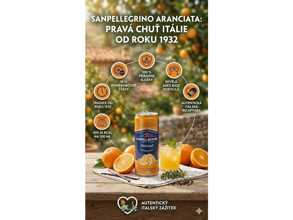 - Tradiční italská limonáda: Sanpellegrino Aranciata je typický italský nápoj, který přináší chuť Itálie do každého doušku.