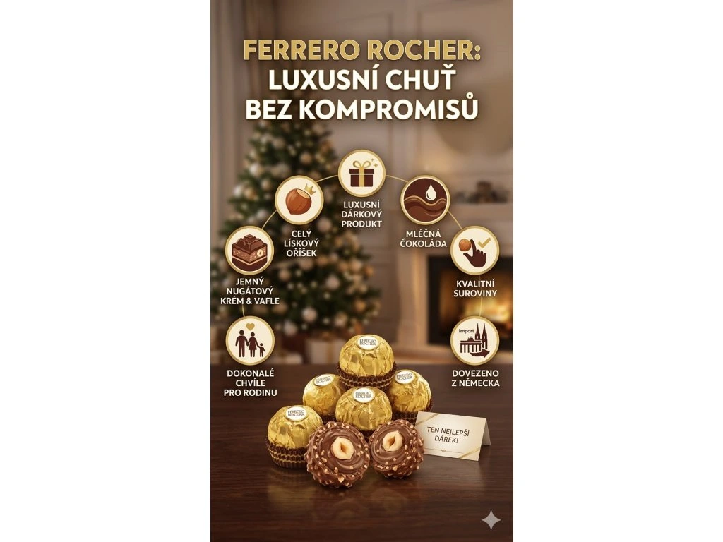 Dárkový produkt: Díky svému luxusnímu balení a vynikající chuti jsou Ferrero Rocher pralinky často používány jako dárek k různým příležitostem, jako jsou Vánoce, Valentýn, narozeniny a další oslavy.