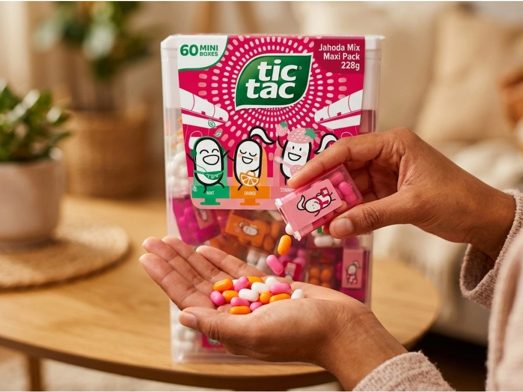 Běžné bonbony v supermarketu jsou buď příliš velké, příliš sladké, nebo zkrátka bez oné „prestižní" přidané hodnoty. Tic Tac ve formátu Maxi Pack nabídne výrazně lepší poměr cena/objem a navíc skvělou vizuální prezentaci — průhledný box plný barevných mini krabiček prostě zaujme na první pohled.
