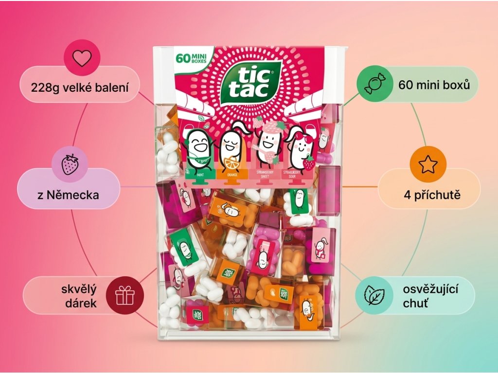 - Kultovní design se 4 roztomilými postavičkami Tic Tac na obalu