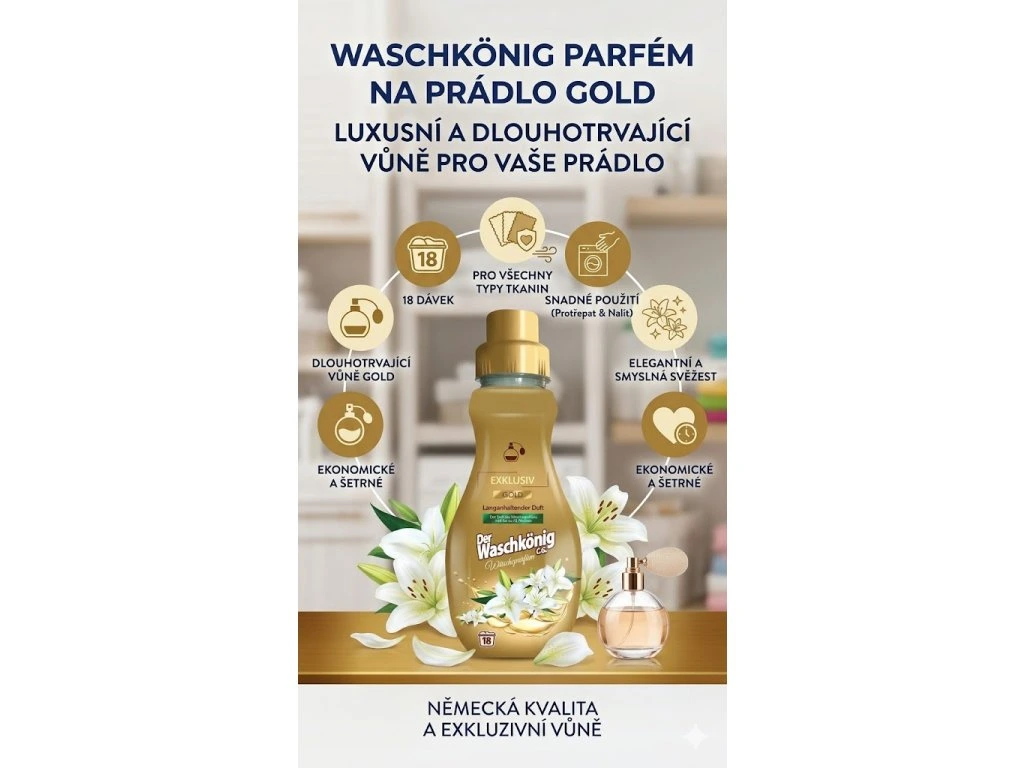 Proč si vybrat Waschkönig parfém na prádlo Gold 18 dávek, 360 ml?