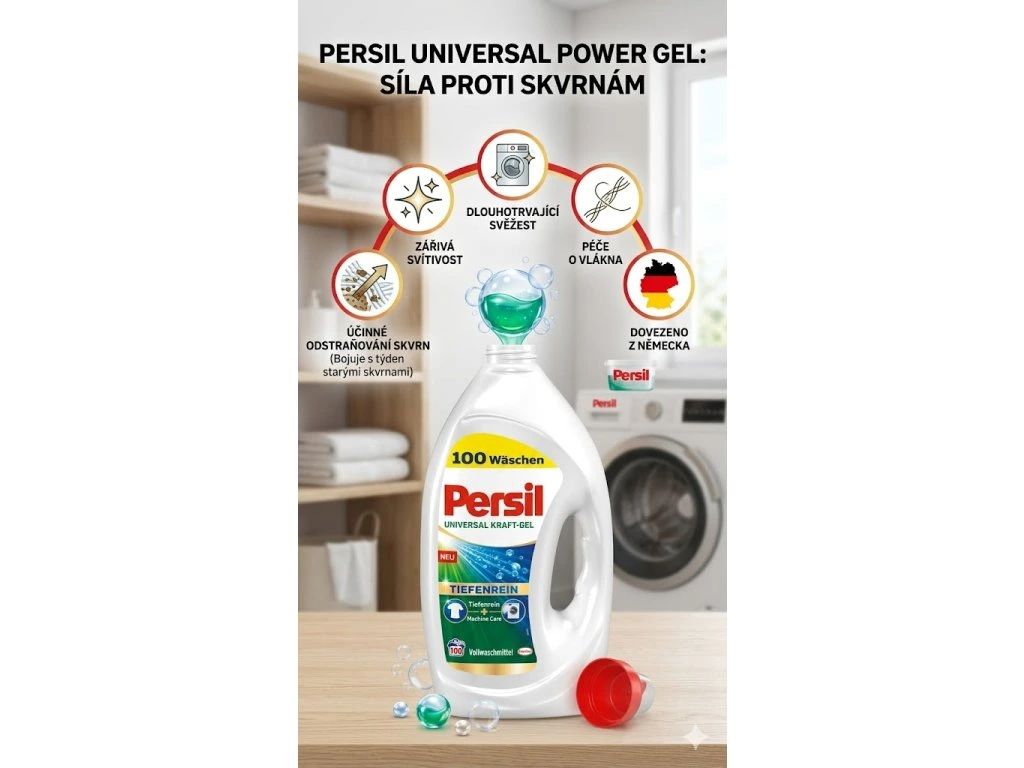 - Persil Gel odstraňuje i ty nejhlubší skvrny a zároveň je šetrný k vláknům.