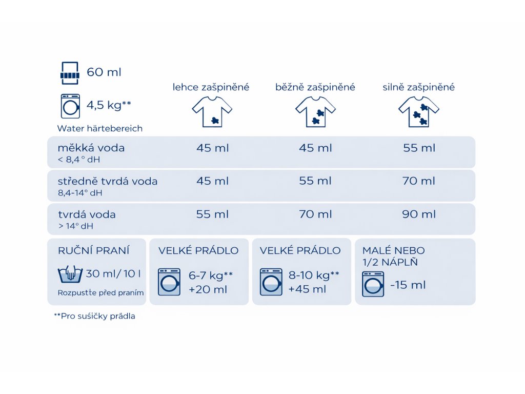 - Dávkujte gel přímo do zásobníku nebo do bubnu pračky