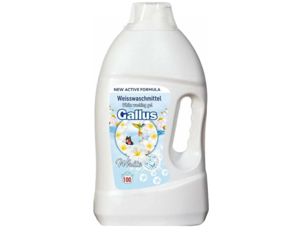 Zářivě bílé prádlo s každým praním! Gallus White prací gel je ideální pro každodenní praní bílých textilií, chrání vlákna, brání zašednutí a vystačí až na 100 pracích dávek. Šetrné složení, dobře rozpustný gel, vhodný do všech typů vody.