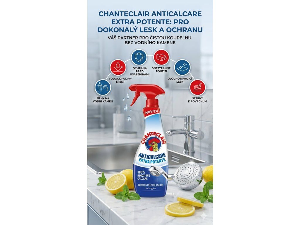 - Všestranné použití: Chanteclair Odstraňovač vodního kamene Antigoccia je vhodný pro použití na sanitu, nerezové a chromové povrchy, neporézní obklady a keramiku. Je ideální pro čištění sprchových koutů, vodovodních baterií, umyvadel, dřezů a dalších povrchů vystavených tvrdé vodě.