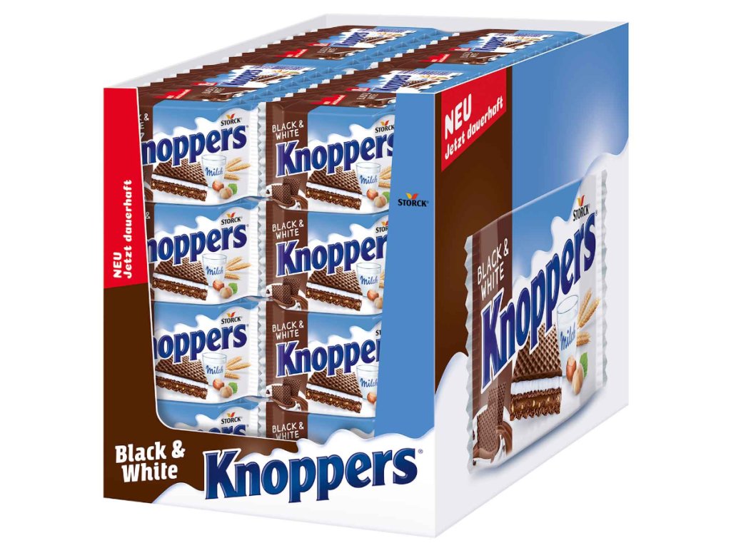 Značka Storck patří mezi nejznámější výrobce sladkostí v Německu. Knoppers je jejich ikonickým produktem, který spojuje kvalitu, chuť i praktičnost. Verze Black & White je moderní variací klasiky, která osloví i náročnější zákazníky. Díky dovozu přímo z Německa přinášíme tuto prémiovou chuť i českým zákazníkům – bez kompromisů.