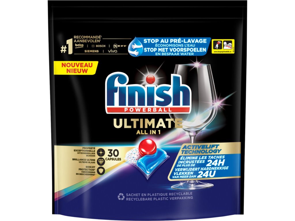 S kapslemi Finish Powerball Ultimate All in 1 získáte maximální čistotu, oslnivý lesk a ochranu v jednom kroku. Každé otevření myčky bude radostí. Dopřejte si kvalitu, která je standardem na náročných západoevropských trzích, a užijte si bezstarostnou péči o nádobí každý den.