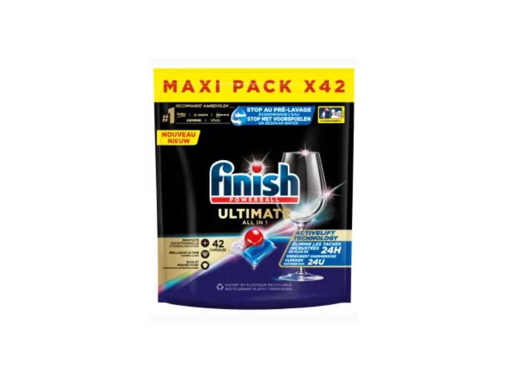 Finish Powerball Ultimate All in 1 v balení 42 ks je investicí do pohodlí a perfektního výsledku při každém mytí. Maximální čistota, oslnivý lesk a ochrana v jednom kroku – bez zbytečné námahy. Dopřejte své domácnosti kvalitu, která obstojí i při vysokých nárocích každodenního provozu.