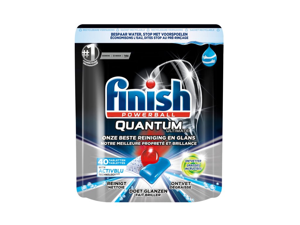 Finish Quantum All in One tablety do myčky jsou navrženy pro silné a účinné čištění, které zajišťuje zářivý lesk již po prvním mycím cyklu. Tyto tablety mají pokročilou 3-komorovou formulaci s technologií ACTIVBLU, která efektivně odstraňuje všechny druhy zbytků jídla, a to bez nutnosti předmytí. S obsahem o 25 % méně chemických látek ve srovnání s variantou Finish Power All in 1, jsou šetrnější k životnímu prostředí a stále poskytují dokonalé výsledky.