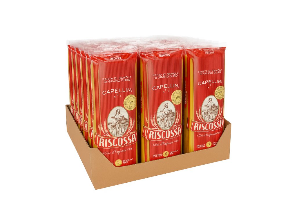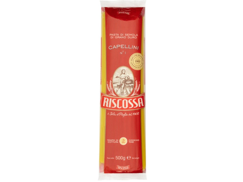 Italská kvalita: Riscossa Capellini jsou vyrobeny v Itálii s důrazem na tradiční metody výroby těstovin, které jsou zárukou kvalitní chuti a textury.