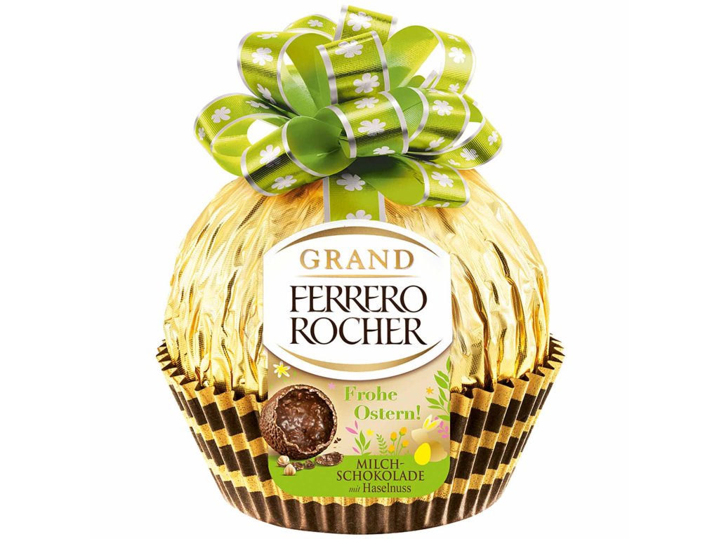 - koule obsahuje samostatně balené pralinky z mléčné čokolády s nugátovým krémem, vaflemi a celými lískovými ořechy.