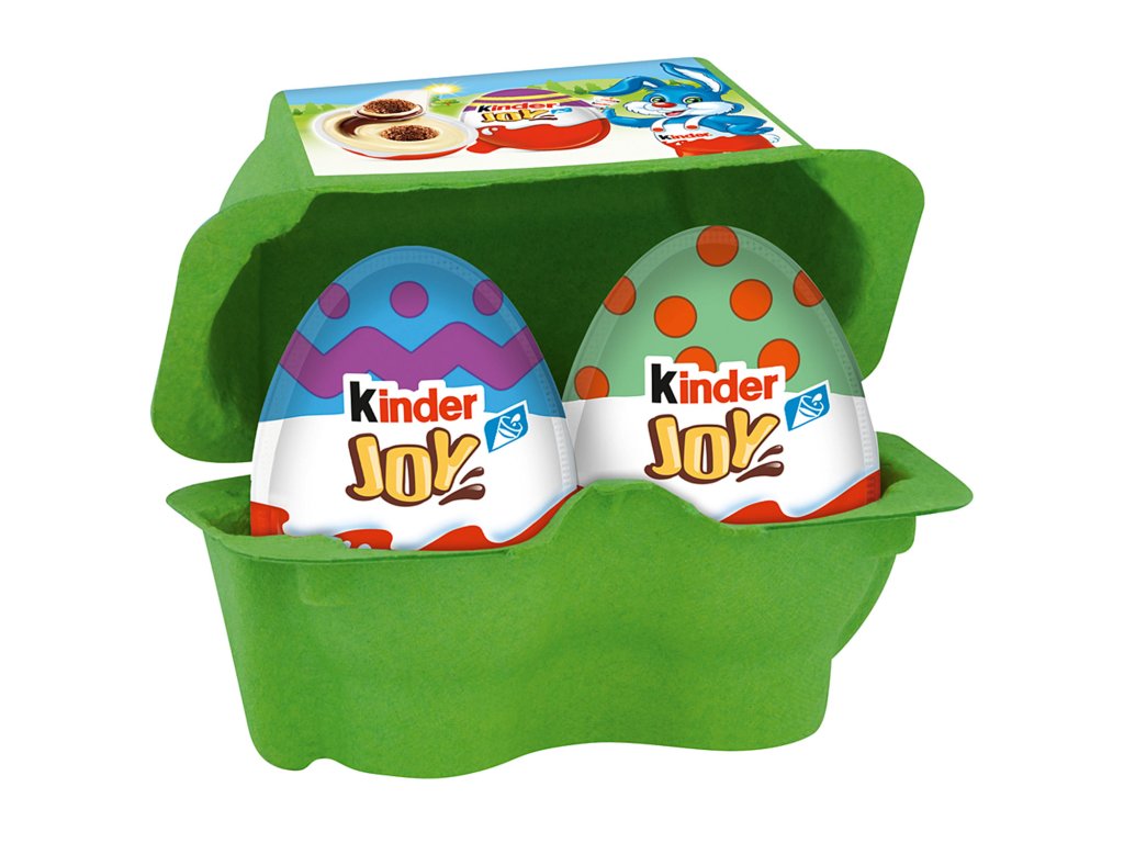 Každé dítě miluje překvapení. Podarujte děti o Velikonocích sladkými vajíčky Kinder Joy v limitované velikonoční edici. Odměňte malé koledníky a potěšte je dárkovým balením se dvěma velikonočními vajíčky. Cukrovinky Kinder Joy se vyrábějí z kvalitního mléka a čokolády. Vajíčka ukrývají ve svém nitru lahodný kakaový krém, dvě křupavé kuličky a velikonoční hračku. Se sladkými vajíčky Kinder Joy budete u dětí slavit úspěch!