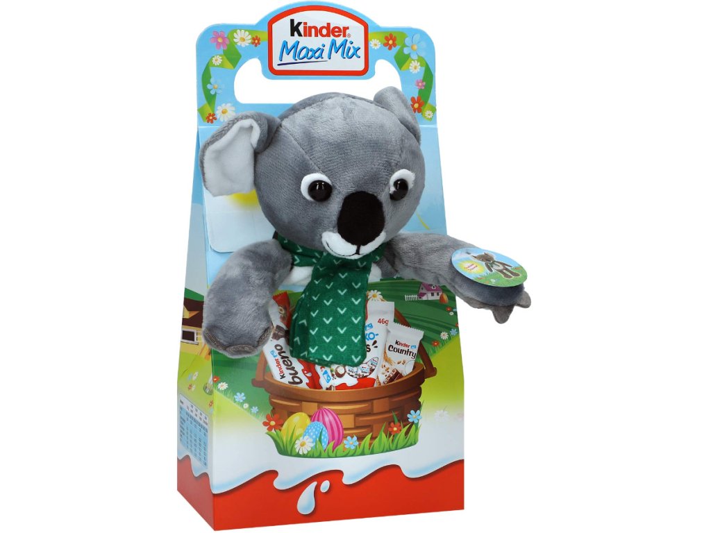 Roztomilý kamarád z plyše! Pokud stále hledáte vhodný dárek k Velikonocům, najdete ho zde. Plyšová hračka pro děti "Trudchen Träumer" Maxi Mix zaručeně vykouzlí úsměv na tváři malých i velkých. Přibližně 25 cm vysoká postavička vybízí děti ke hře a má pro ně připravené sladké překvapení. Výběr 4 různých pamlsků od Kinderu osladí sváteční období a dokonale doplní nápad na dárek.