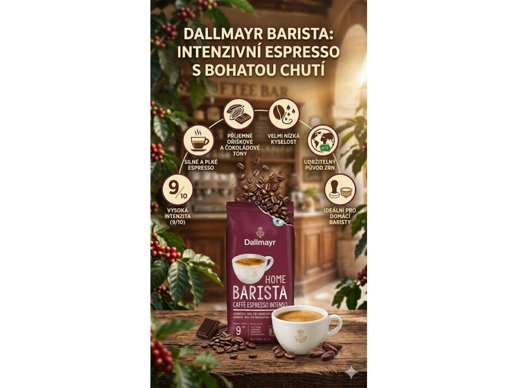 Dallmayr Barista Caffè Espresso Intenso Zrnková Káva 1 kg – Pro Milovníky Silného a Plného Espressa