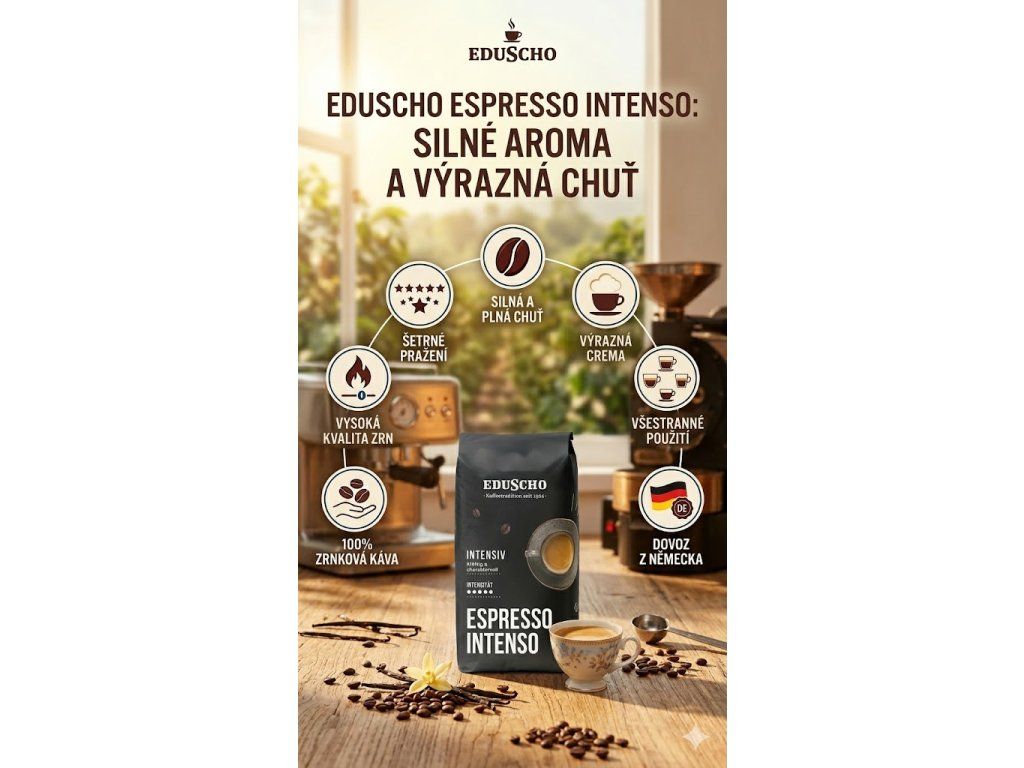 Užijte si: Vychutnejte si intenzivní a plnou chuť Eduscho Caffè Espresso Intenso.